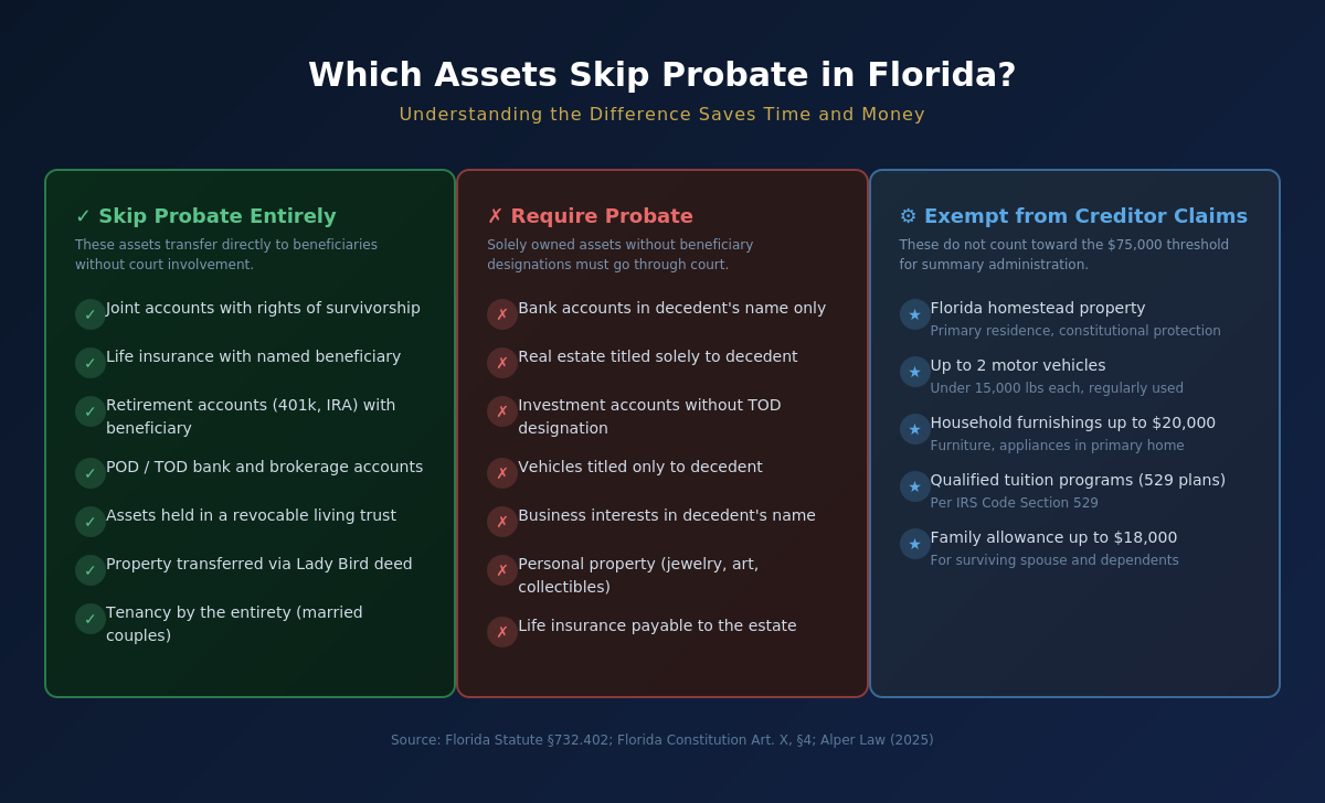 Figure 3: Which Assets Skip Probate vs. Require Probate in Florida